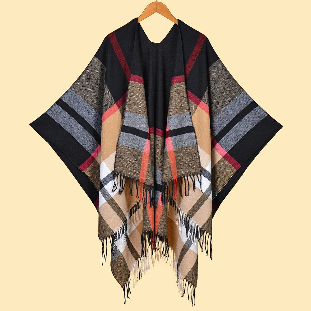 Plaid Acrylic Cashmere Poncho